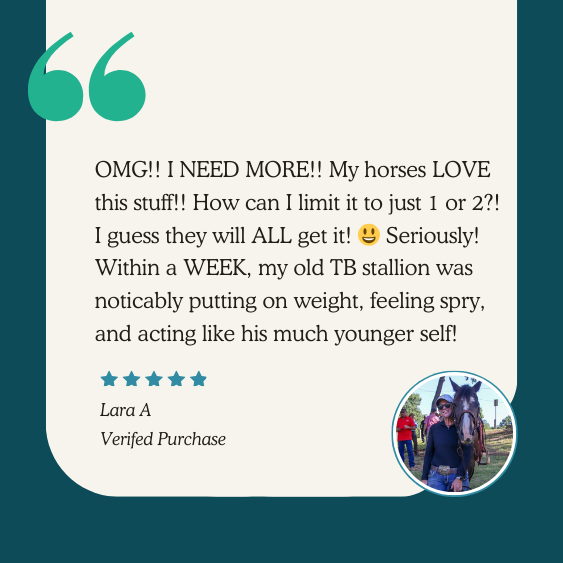 Callie is a +20 year old mustang who started life as part of a wild herd in Oregon. She wasn't in great condition when she came into the care of Maggie but her coat and skin were particularly poor with patches of hair missing and no shine at all. Maggie introduced Regenerative Omegas and has seen Callie's coat transform - she is now blooming and has a wonderful shine.